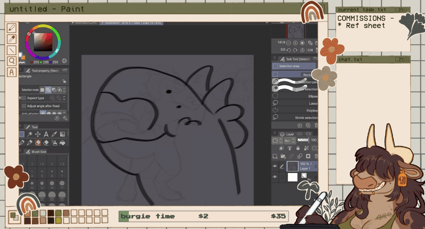 Full illustrations, PNGtuber sprites, sketch pages, custom bases, discord emotes... if you're interested in something not listed above, just contact me!